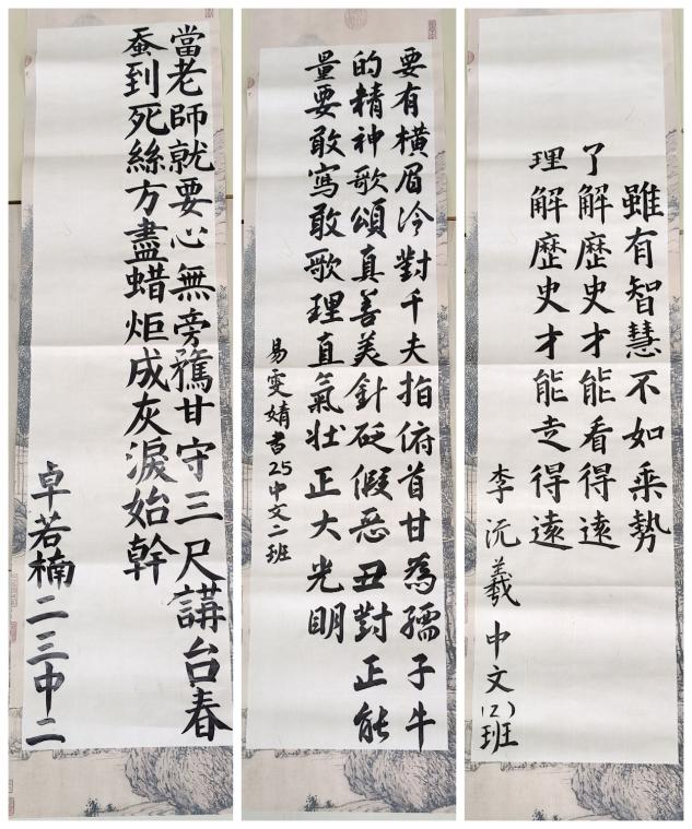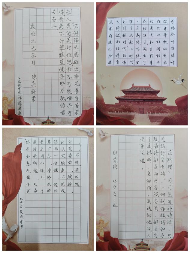 在比赛现场,我院学子以笔代言、以墨传情,在横竖撇捺间传递着对中华优秀传统文化的热爱,在笔墨书香中深化着对习近平文化思想的领悟。