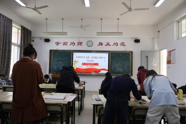 为深入学习贯彻习近平文化思想,推动学院文化育人走深走实,11月27日下午,我院学生第一党支部在俊秀东楼举办“文墨抒怀守文脉 青春践行勇担当”书法比赛。书法比赛内容选取习近平总书记重要讲话中引用的经典名句。