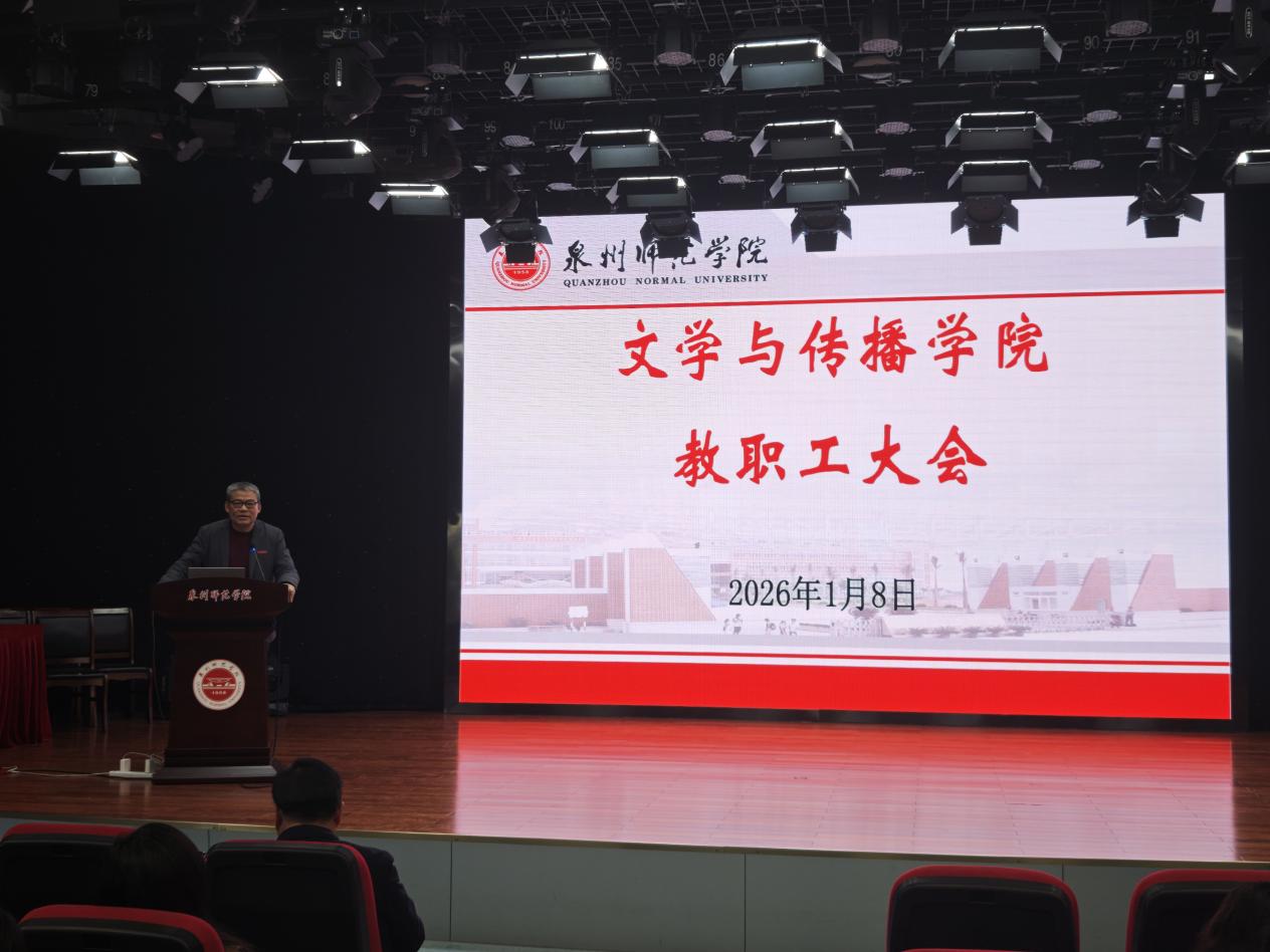 1月8日,文学与传播学院在俊秀演播厅召开2026届毕业生就业创业工作会议。会议由院长王勇卫主持。学院党政领导班子成员、全体教职工参加会议。