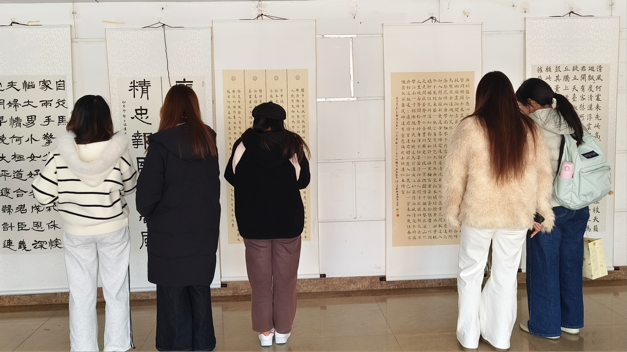 参观过程中,师生们驻足于作品前,由黄显洋老师进行讲解,带领大家细细品味笔墨间的韵味,深化对书法艺术的理解与感悟。大家在欣赏书法创作技巧的同时,也从作品传递的廉洁理念中获得思想启悟。