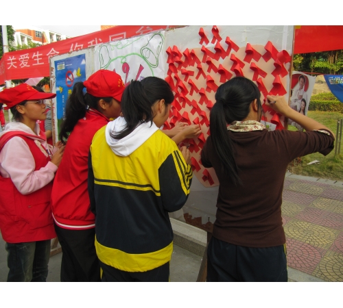今年12月1日是第23个“世界艾滋病日”,我院青年志愿者协会与泉州疾病防控中心在学校奎生超市前共同举办了预防艾滋病的红丝带宣传活动。