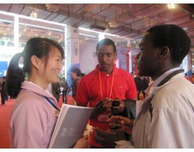 志愿者们耐心细致的为与会客商解答问题