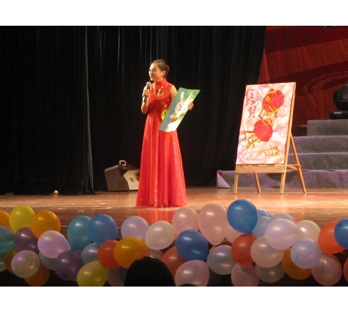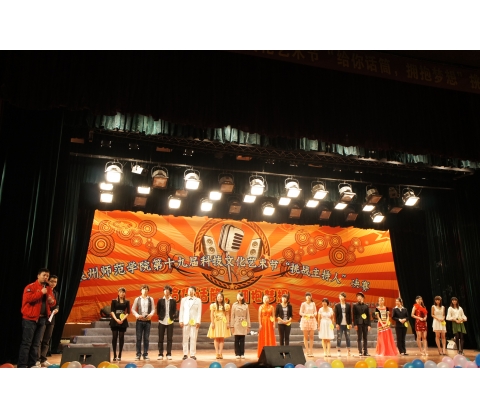 全校共有17名优秀选手通过校级海选进入最后决赛。此次大赛以“给你话筒,拥抱梦想”为主题,旨在为广大学子提供展示风采、实现梦想的舞台,而评委则通过“展示自我、妙语连珠以及情景主持”三个环节对选手进行评分,并最终评出冠亚季军以及四个单项奖。我院共有三名学生进入此次决赛,分别是来自英日双语专业的宋婉源、黄芳以及英语教育专业的连丹萍同学。在展示自我环节,三位选手落落大方,台风稳健,将自我介绍融入才艺展示中,宋婉源同学将二胡与芭蕾舞巧妙结合的表演形式,演绎了中西文化的交融并汇;黄芳同学发挥自身优势,模仿小品演员宋丹丹的声音;而连丹萍同学则进行现场书法展示,并阐释了写“静”字的意义。在之后的主持串词以及情景模拟主持中,三位同学妙语连珠,展示出了主持人的应变能力和临场发挥能力,场下欢呼与掌声不断。据悉,此次比赛我院共有100多名同学到场为三名选手呐喊助威,亲友团的加油给了选手们更多勇气和自信。