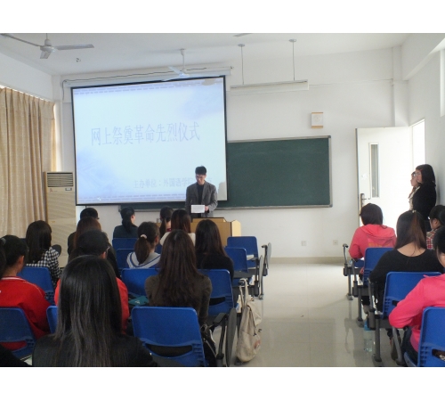 仪式上,全体参加者通过向烈士献歌、敬献鲜花,集体默哀一分钟的方式向先烈寄托了浓浓的哀思。学生科科长黄国波老师阐述了革命先烈的伟大壮举,代表大家抒发了对革命先烈的敬重,希望大学生能继承和发扬先烈的爱国精神,树立报效祖国的远大志向。学生会主席王美雪同学作为学生代表发言,她认为我们今天的幸福生活都是革命先烈们抛头颅洒热血换来的,我们要学有所成,将来回报社会。接着,全体党员重温了入党誓词,坚定了党的信念,继承党的事业。最后,在庄严肃穆的《国际歌》中仪式结束。