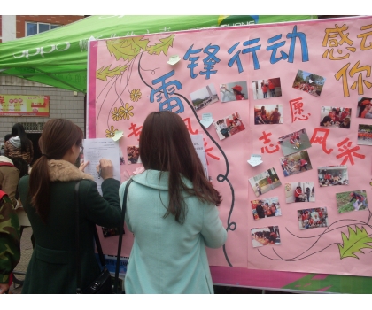 活动内容包含填写问卷调查和留言祝福两个环节。为充分调动大家参与的积极性和广泛性,志愿者们热情地邀请路过的同学填写问卷,为前来了解的同学介绍雷锋的先进事迹。在志愿者的引导下,许多同学主动在留言板上留言,抒发自己对雷锋月的感受。
