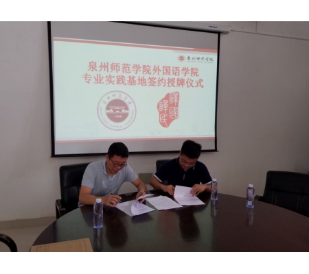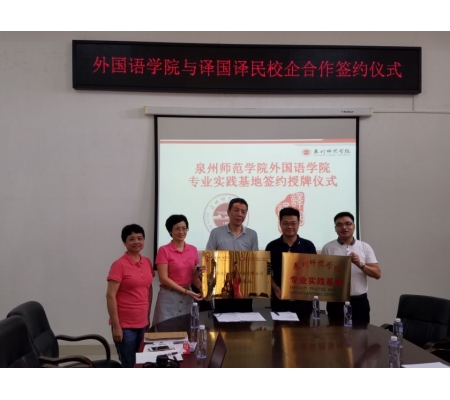 2017年10月12日上午,外国语学院与译国译民翻译服务有限公司校企合作协议签订暨授牌仪式在外文楼113会议室举行。学院党委书记李丽雪、副院长谢传生、副院长黄莉娜及相关教师,译国译民董事长林世宋等一行参加了签约授牌仪式。双方就翻译工作室的建立和运行、学生实习与就业、教师相关课题开展等合作事宜进行了深入交谈。谢传生副院长与林世宋董事长签署了校企合作协议书。当天下午,译国译民英语中心总经理谢亮亮还在112多媒体教室为我院学生进行了“职业翻译与翻译职业”的专题讲座。