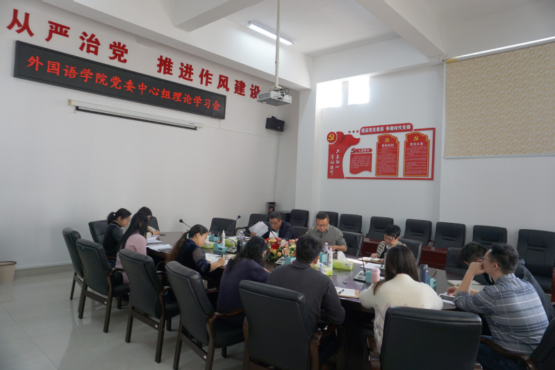 3月15日上午,外国语学院在俊秀外文楼113会议室召开学院党委理论学习中心组学习会。本次会议由蒋双霖书记主持,院领导、纪检委员、各科室负责人和各党支部书记参加。