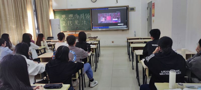 我院通过开展相关主题班会,让同学们对宪法有了进一步的认识。班会伊始,各班负责人组织同学们观看了宪法日宣传片及其相关视频。此外,同学们还以分享宪法小故事、趣味问答等有趣的形式积极学习宪法精神,营造出了一种人人学习宪法,人人拥护宪法的良好氛围。最后,通过交流分享,宪法朗读等一系列环节,同学们更进一步地走进了宪法,树立了宪法至上的意识,增强了宪法观念。