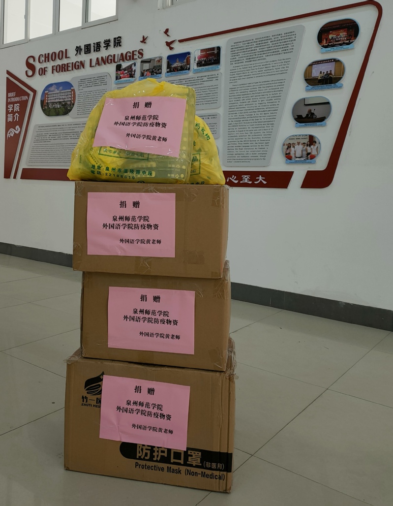 在学校疫情防控进入关键时期,我院黄诗海、谢燕鸿、邱美双等教师得知学院防疫物资紧缺的情况后,为学院捐赠一批防疫急需物资,用于支持学院疫情防控工作。