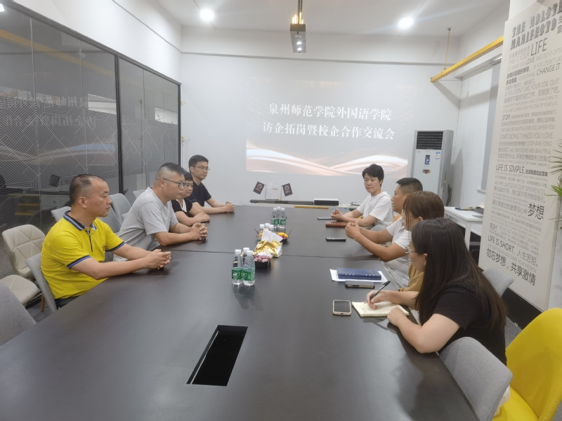为了深入开展社会需求调查,深度了解用人单位对毕业生的知识、能力、素质要求,着力拓宽毕业生就业渠道,8月1日,外国语学院党委书记蒋双霖带队,副书记兼纪委书记林伟荦、副院长黄莉娜、黄诗海以及英语专业副主任沈日中一行,实地走访了福建正域跨境电子商务有限公司和校友企业泉州市雅梵家具用品有限公司,开展了开展访企拓岗促就业交流活动,就产业人才培养、校企协同创新进行了交流。