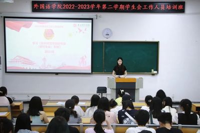 为深入学习宣传贯彻党的二十大精神,坚持用习近平新时代中国特色社会主义思想引领青年思想、凝聚青年力量,进一步提升学生干部的工作能力,营造积极向上的新时代学生会形象。外国语学院于5月28日晚开展以“青春心向党,领航新征程”为主题的2022-2023学年第二学期学生会工作人员培训班。