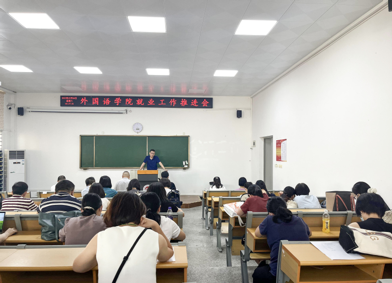 7月8日周六上午,学院在112教室召开2023届毕业生就业工作推进会,传达贯彻学校毕业生就业工作推进会精神,就推进学院毕业生就业工作进行再强调、再部署、再落实。院领导、英语专业和商务英语专业全体教师、全体行政人员参加了会议。会议由蒋双霖书记主持。