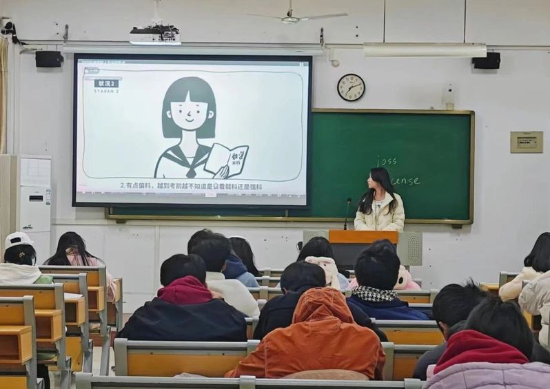 12月17日,外国语学院开展“缓解考试焦虑”主题心理健康教育班会。本次班会由各班心理委员主持,全体学生参与。