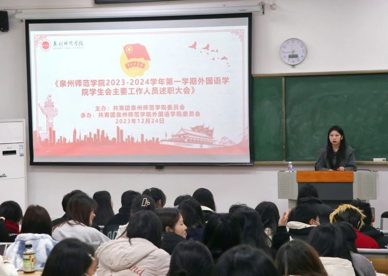 为全面加强外国语学院学生会组织工作人员队伍建设,进一步推动完善学生会组织述职评议制度。12月24日,外国语学院于俊秀外文楼112教室召开2023-2024学年第一学期述职评议大会。