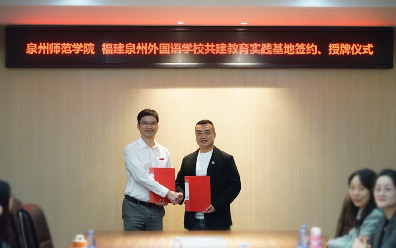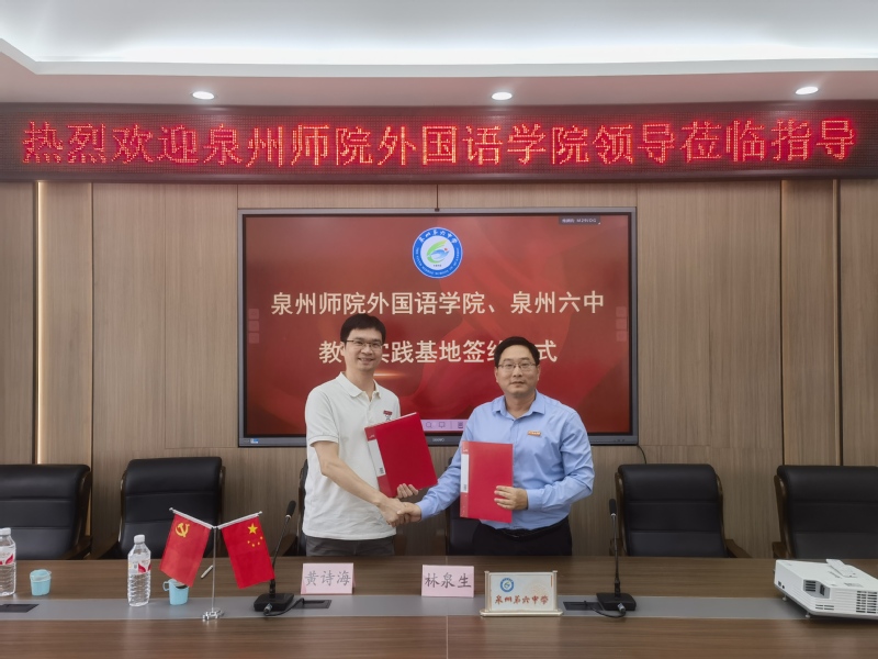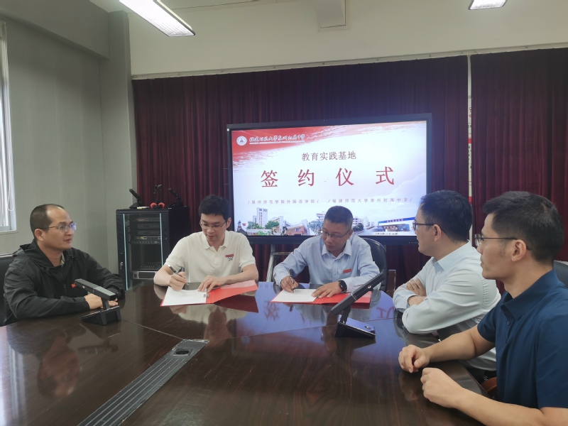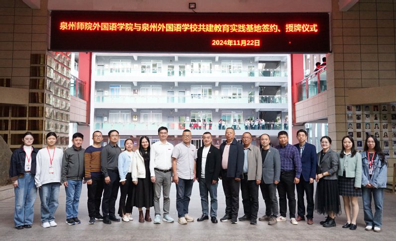 2024年11月,外国语学院与六所泉州市区优质中学签约共建教育实践基地,它们分别是泉州第十一中学、泉州市第六中学、福建师范大学泉州附属中学、福建泉州外国语学校、泉州市第九中学和泉州市第七中学。出席签约仪式的有外国语学院党委书记蒋双霖、副院长黄诗海、英语系主任张锦龙和相关实习带队老师以及各所中学的校长等相关领导。