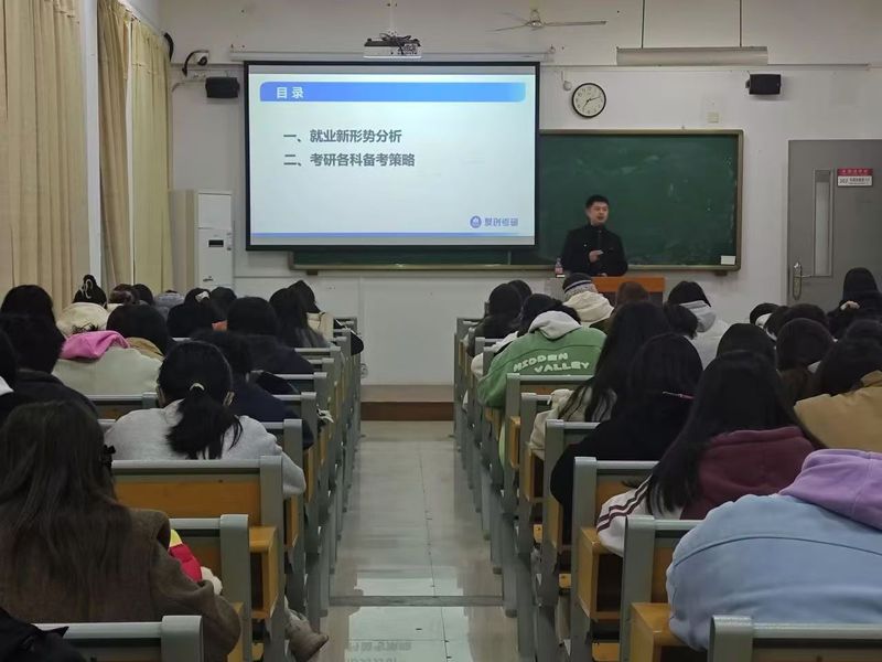 12月8日晚,外国语学院开展了考研指导讲座,此次讲座邀请聚创考研规划师主讲,2022级学生参加。