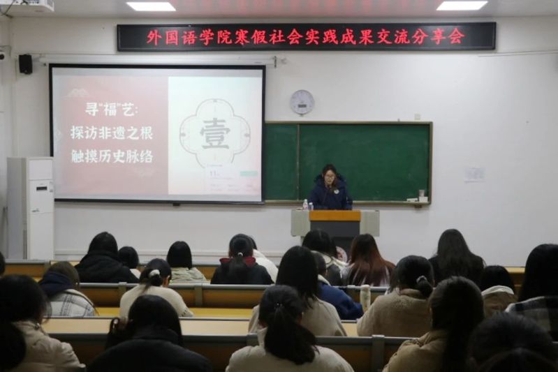 2月23日,外国语学院举办社会实践分享会,陈思琪、张欣怡等实践队成员分享寒假社会实践经历。