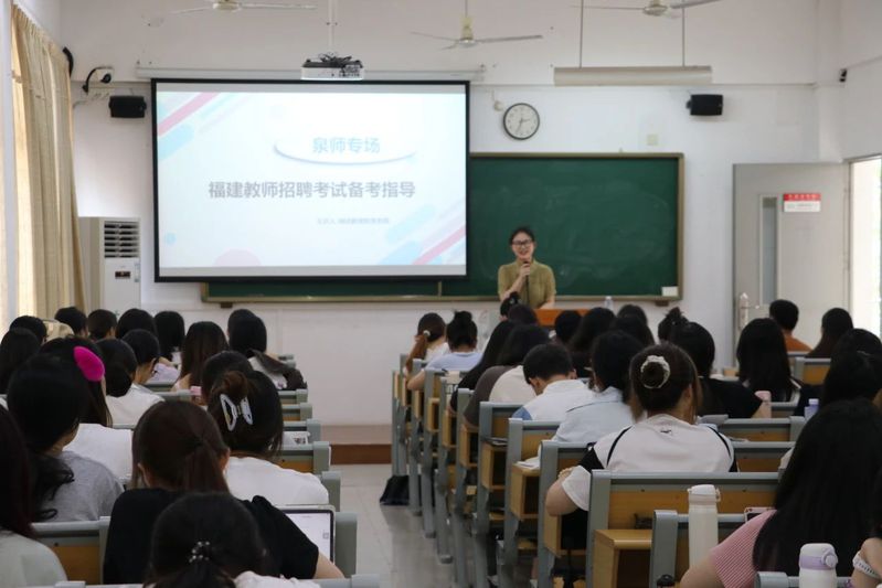 讲座中,主讲老师解读了近年福建省教师招聘相关政策,并且结合笔试和面试的不同要求讲解了各阶段的复习规划。在互动环节,主讲老师耐心解答了同学们的困惑,鼓励大家把握应届优势,合理安排时间,积极备考。