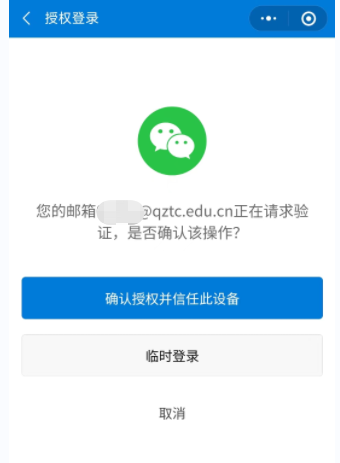 3.使用常用电脑二次验证时,可以选择“确认授权并信任此设备”,以后登录不再需要二次验证。非常用电脑登录电子邮件系统,建议选择“临时登录”。