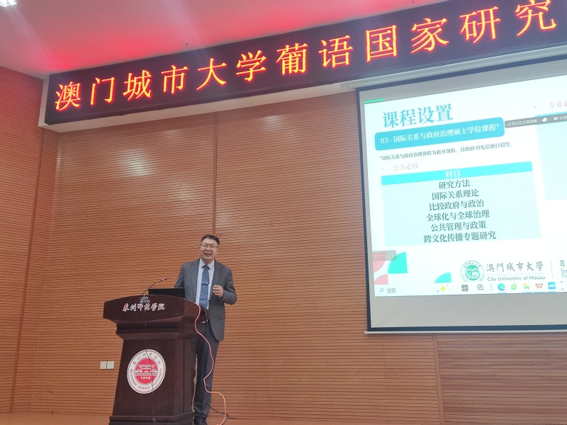 3月7日下午,澳门城市大学葡语国家研究院课程主任、澳门一带一路研究中心主任周平一行来校开展硕士研究生项目宣讲。台港澳办负责人,文传学院、外国语学院学生代表参加。