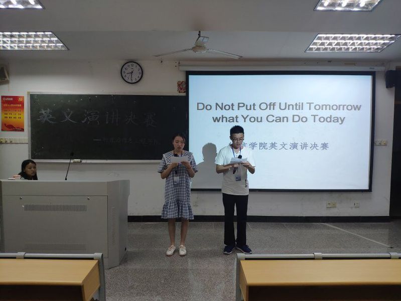为营造我院良好的英语学习气氛,增强同学们的英语学习热情,丰富大学生校园文化生活,4月21日晚上8时30分,我院学生会在千墅410教室举办了英语演讲决赛,10位来自我院的优秀选手参加此次比赛。
