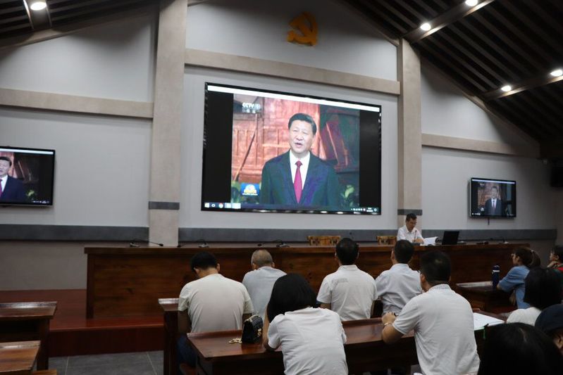 全体师生党员集中观看《习近平带领新一届中央政治局常委瞻仰上海中共一大会址和浙江嘉兴南湖红船》视频,感受“红船”展示出的革命精神。