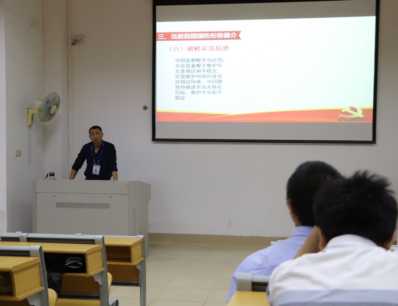 刘永锋老师以“增强国防观念,履行国防义务”为主题,从“国防是什么、国防靠什么、当前我国国防形势简介、如何为国防建设做贡献”四个方面来宣讲国防知识和爱国主义,并结合中美贸易摩擦、南海争端、台湾问题、中印边界争端等方面,详细介绍了我国当前的国防安全形势,引导广大学生要增强爱国主义情怀,提升国防安全意识和忧患意识,居安思危、奋发进取、自强不息。