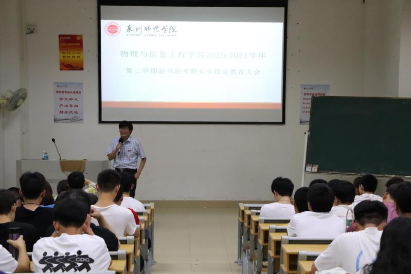 为了让学生在期末考前的复习能有序高效进行,营造安全稳定、温馨和谐的学习环境,2021年6月24日下午,我院在理工218教室召开期末温书迎考暨安全稳定教育大会,学院院长、党委书记杨惠山,院党委副书记、纪委书记洪荣文,院党委副书记吴丽双,学工办辅导员和非毕业班全体学生参加,会议由杨惠山主持。