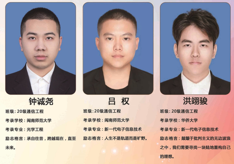 我院2024届毕业生中,2020级通信工程班的A9-301C宿舍被称为学霸宿舍,宿舍5人全员通过考研顺利上岸,成为全院乃至全校的优秀毕业生典型。