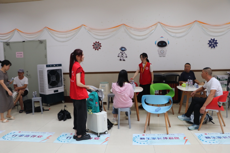我院贴心设计新生家长休息处、行李寄存处、绿色通道咨询点,提供矿泉水和常备药品等物品,为新生及其家长提供温暖与服务。