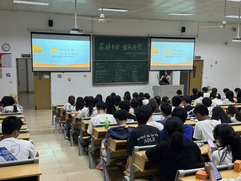 活动期间,我院举行学习经验交流会,由五位学长学姐向新生们分享学习心得,引导新生合理地规划大学四年的学习生活。然后,我院进行知识竞赛,围绕中秋节的起源、发展让新生们抢答,并准备丰厚的奖品调动新生的积极性。接着,我院还进行关于“花好月圆”的诗词飞花令比赛,引导每个小组说出5句有关月亮的诗句,让大家在字里行间体会到古人赋予中秋佳节的浪漫与哲思。最后,我院举行诗词创作比赛,组织每个小组用5-10分钟作出一首关于中秋佳节的原创诗歌,使新生们对中秋节有了更具象的表达。