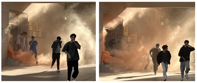 下午三点,随着消防警报声响起,实验室负责人迅速反应,关闭电源设备,组织师生从千墅楼疏散。演练过程中,师生们沉着冷静,掩住口鼻,沿着指定的应急通道俯身前行,迅速有序地撤离至安全地带。