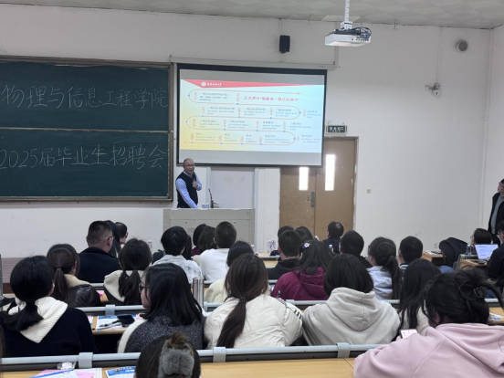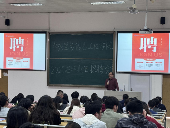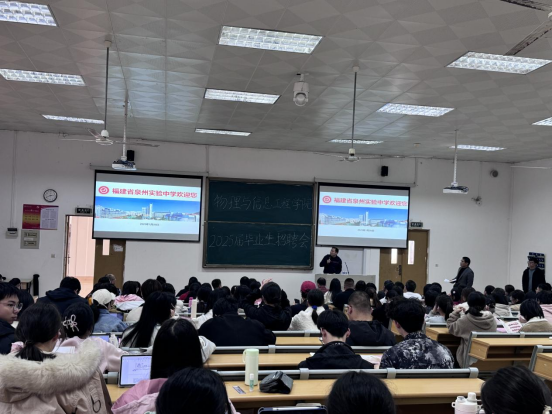 2025年3月20日下午2:30,物理与信息工程学院于理工楼218教室成功举办师范类毕业生专场招聘会(一)。本次招聘会共有泉州实验中学、泉州科技中学、泉州现代中学、泉州中远学校、福清京师学校及晋江市陈埭民族中学六所学校参与。学院教工第二支部书记陈文志主持活动,物理学专业专任教师、辅导员及各专业毕业生共计200余人参加。