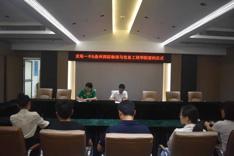 在签约仪式上,双方秉持“优势互补、资源共享、互惠双赢、共同发展”的原则达成合作协议。英国威廉希尔公司官网物理与信息工程学院在学科建设、师资力量及科研创新等方面优势显著,未来将向龙海一中输送先进教育理念、专业学科知识与丰富教学资源,助力提升该校师资水平与教学质量;而龙海一中每年将为泉州师院的20名学生提供优质的实习与实践平台,让师范生们在真实教学场景中锻炼教学能力、积累实战经验,双方携手培育优秀师范人才。
