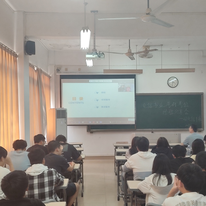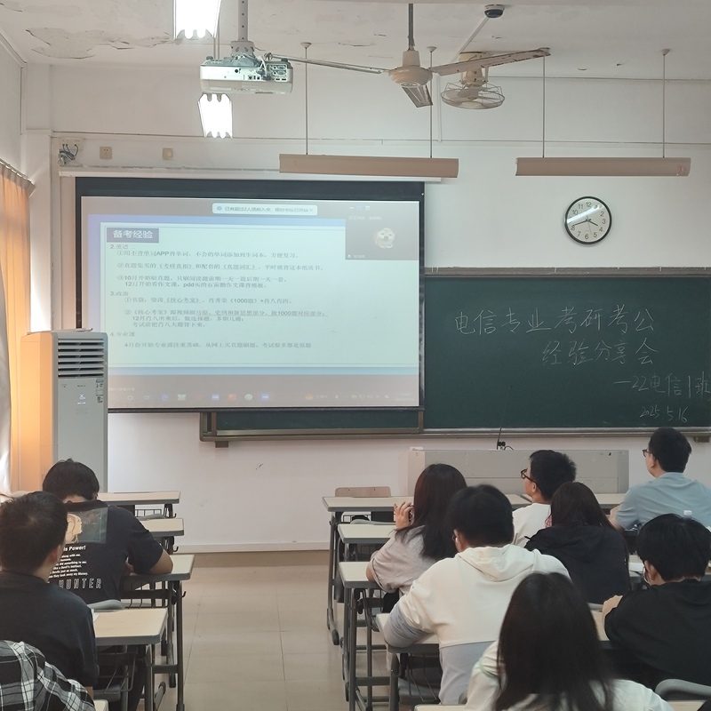 为助力2026届电信专业学子明确未来方向,提升考研考公备考效率,2025年5月16日下午,我院电子信息科学与技术专业在理工楼403教室举办考研考公经验分享会。电信专业辅导员黄祖榜、22级全体学生,共同聆听21级考研考公上岸毕业生线上分享宝贵经验。