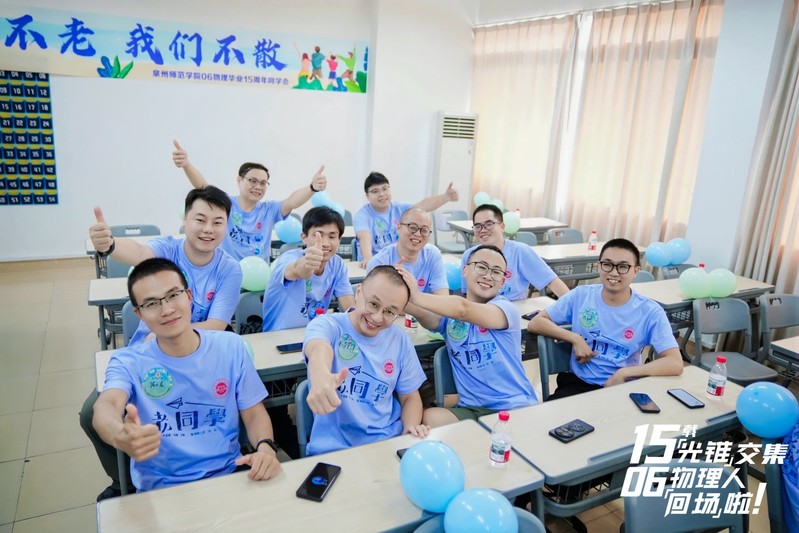 7月12日,物信学院2006级物理专业毕业15周年返校聚会隆重举行。学院党委书记吴丽双、物理专业教师代表及30余位2006级校友欢聚于理工楼401教室,共同追溯青春足迹,畅叙师生情谊。