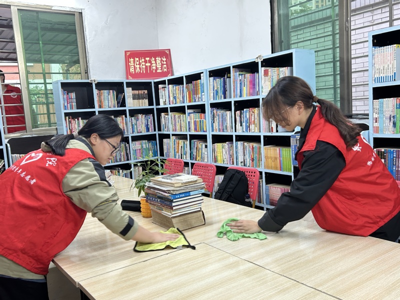 活动期间,同学们统一身着学院志愿服装,在工作人员的安排下迅速投入工作。部分志愿者细心整理图书,进行分类、排序与上架;其他成员则负责保洁工作,认真擦拭桌椅、清洁窗户、打扫室外环境。大家齐心协力,使图书馆面貌焕然一新,更为整洁有序。