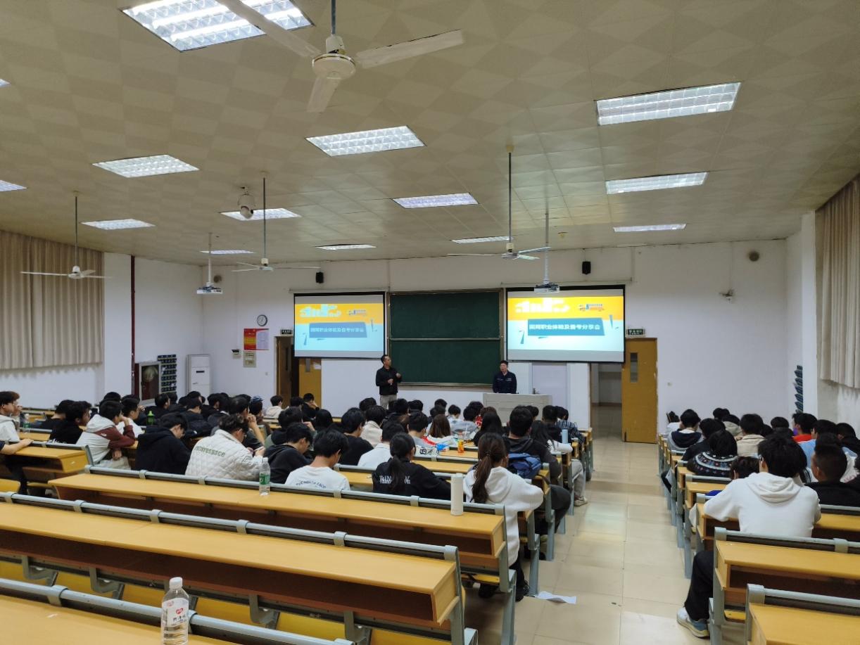 2025届电气工程与智能控制专业优秀校友、国网福建省电力有限公司安溪县供电公司电力工程师陈劲松以“国网职业体验与备考分享”为题,与在校同学展开深入交流。他首先结合自身在电力公司营销、调控、检修等多部门的轮岗实践,生动讲述了从校园到职场的成长历程,分享了如何将电路、电机学、电力系统分析、继电保护等专业理论应用于实际工作的体会,并鼓励同学们扎实掌握核心课程,为未来职业发展筑牢基础;随后,陈劲松校友系统地梳理了国家电网的备考经验,围绕考试科目、时间规划、学习方法、分数构成及具体流程等方面展开详细介绍,无私分享了自己在备考过程中积累的宝贵经验;最后,他针对当前网络上常见的备考误区进行了分析与澄清,鼓励学弟学妹主动获取信息,打破信息壁垒,科学规划,积极备考,以信心与准备迎接挑战。