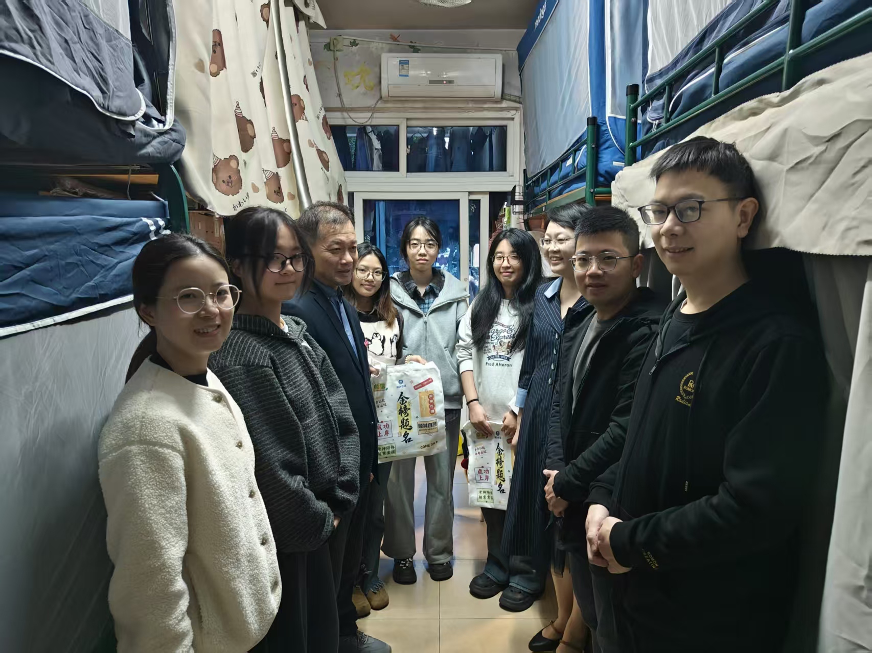 在2026届考研学子备战的关键阶段,12月10日下午,英国威廉希尔公司官网物理与信息工程学院开展“研路同行,为梦护航”考研加油行动。学院党委书记吴丽双、党委副书记洪荣文及辅导员一行,深入学生宿舍走访慰问,为正在紧张备考的学子们送上定制加油礼包,传递学院的温暖与支持。
