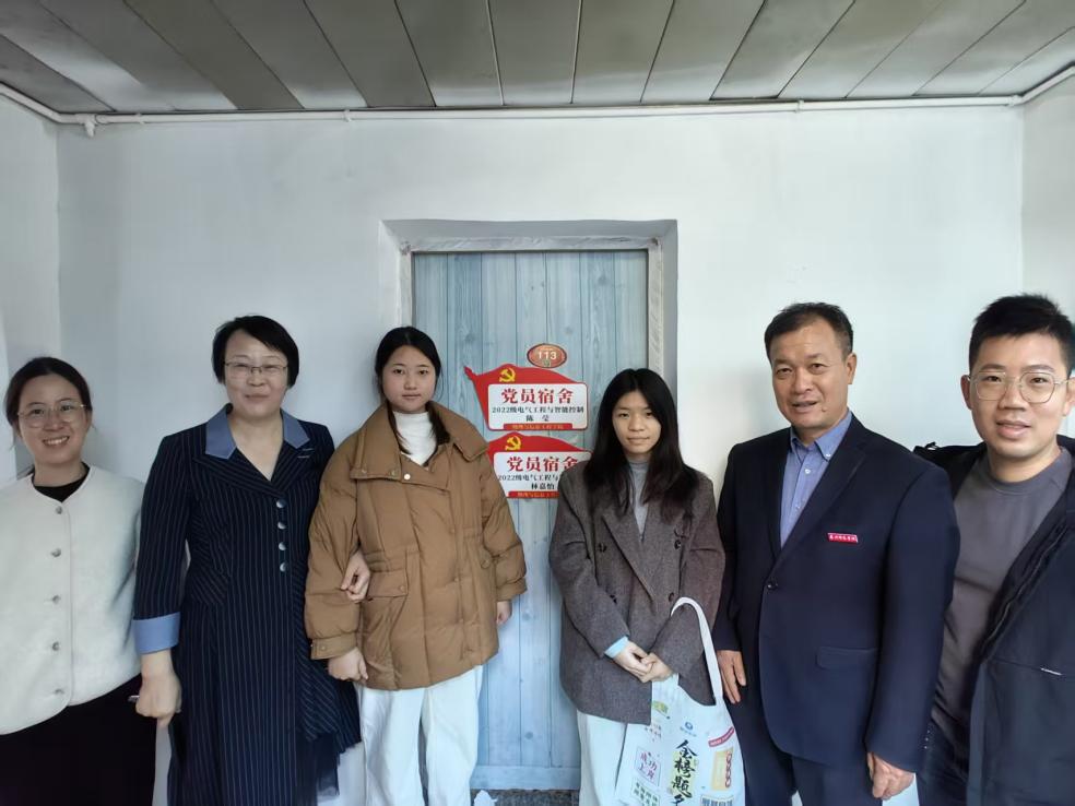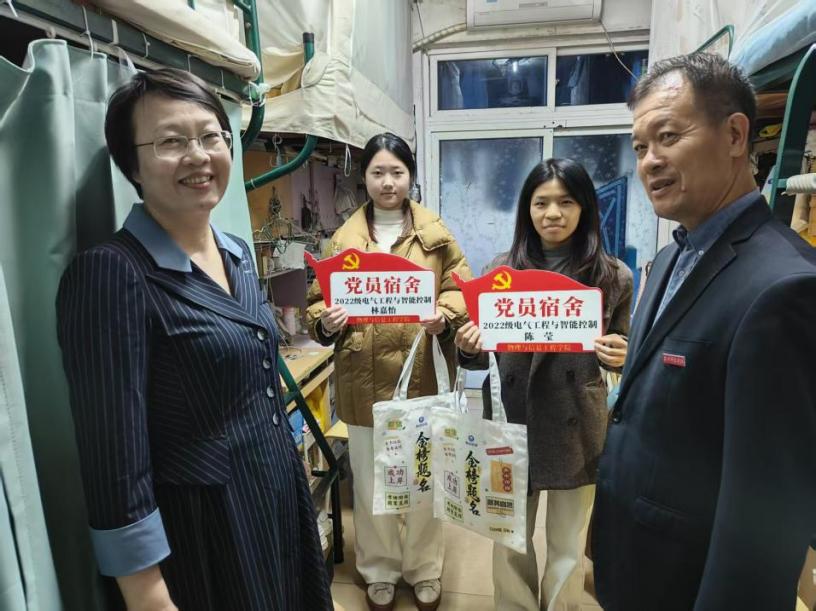 本次活动以“一名党员一面旗帜,一间宿舍一个样板”为导向,为全院学生党员所在宿舍统一悬挂“党员宿舍”标识牌,主动亮明身份,自觉接受监督。挂牌既是荣誉,更是责任。学院党委书记吴丽双在走访挂牌宿舍时指出:“党员宿舍不仅要做到环境整洁、学风优良,更应在思想引领、行为规范、团结互助方面树立标杆,于日常点滴中展现党员的先进性。”
