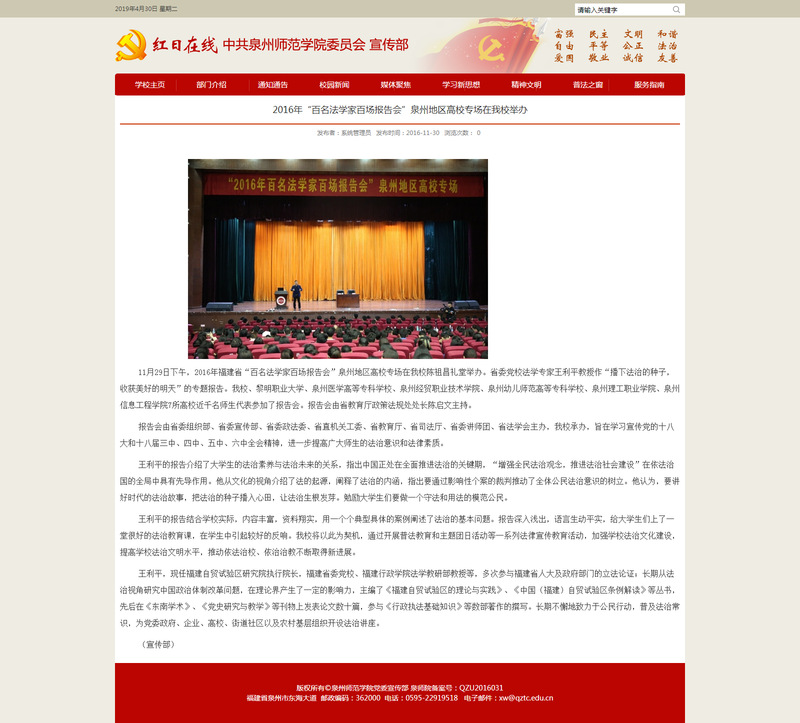 2016年“百名法学家百场报告会”泉州地区高校专场在我校举办