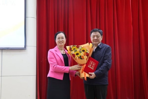 讲座结束,陈秋燕为姚喜双颁发讲座嘉宾证书。