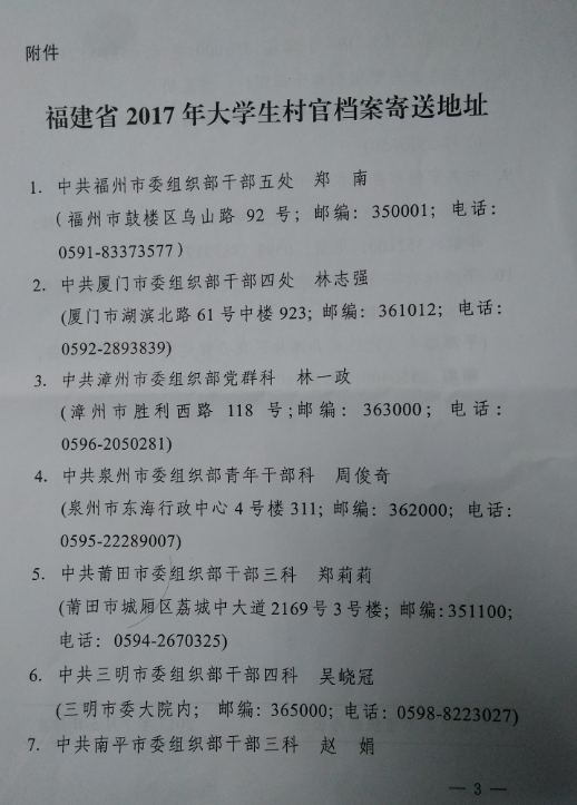 关于确定福建省2017年大学生村官名单的通知