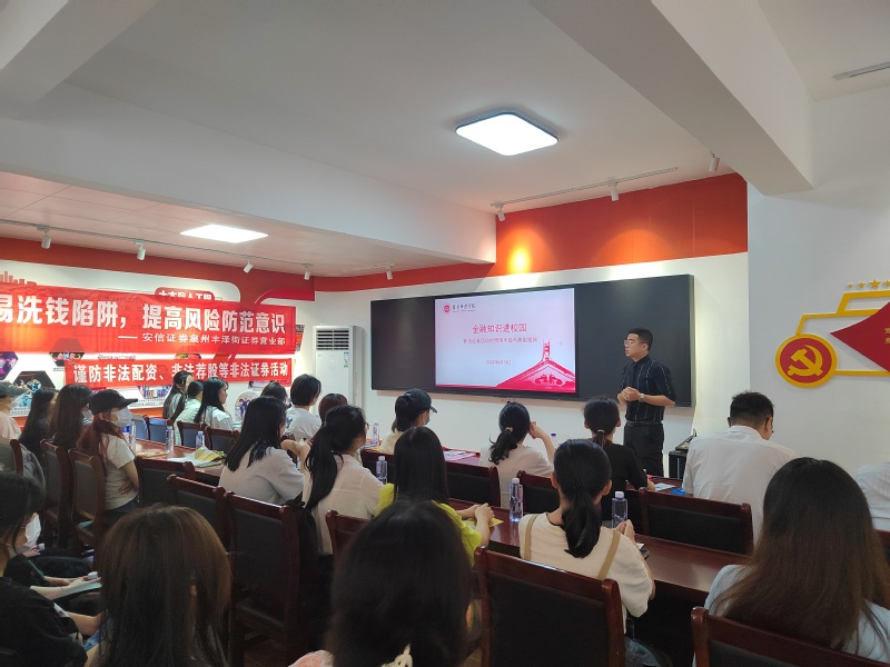 为做好金融知识宣传普及,提升学生的风险防范能力和金融素养,6月14日下午,安信证券泉州丰泽街营业部总经理助理、市场拓展部总经理黄翔应邀到学生社区文明实践中心,分享“非法证券活动的惯用手段与典型案例”金融知识。学生工作部就业创业指导科副科长程力维、各学院学生代表及校自律会学生干部参加。