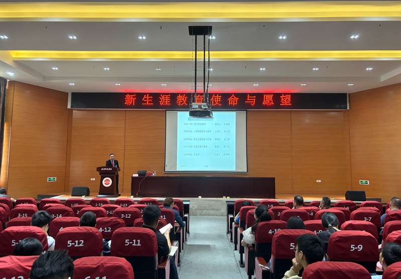 10月17日上午,北京师范大学、台湾师范大学联合培养新生涯教育博士彭永新应邀来校作题为“新生涯教育使命与愿景”专题讲座。各学院分管学生工作负责人,全体辅导员,学工部和心理发展指导中心相关老师参加。武装部部长、学工部副部长黄志梅主持讲座。