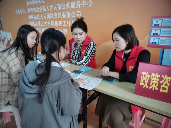 活动现场还设立了毕业生就业创业政策宣传专区,泉州市人社局到场为应聘者面对面解读并精准匹配就业创业优惠政策。