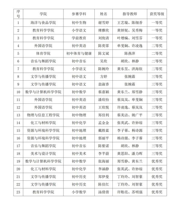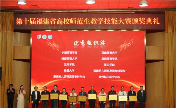 11月24日至26日,第十届福建省高校师范生教学技能大赛在宁德师范学院举行。来自全省36所高校、16个学科的230名师范生同场竞技,我校谢雪婷、傅雅欣、刘俊清等23位同学凭借现场出色发挥,获得一等奖3项、二等奖4项、三等奖11项、优秀奖5项,学校获优秀组织奖,教育科学学院叶增编老师获评优秀指导教师。