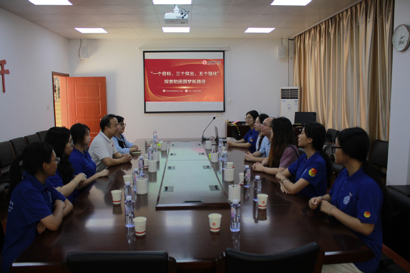 7月8日下午,闽江学院学生工作部学生资助管理中心副主任张意一行10人来校调研交流。我校学生工作部副部长尤建军,就业创业指导科副科长、学生资助管理中心负责人程力维等参加座谈会。