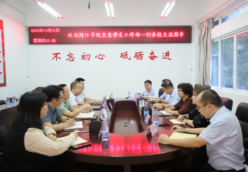 10月31日下午,闽江学院党委学生工作部部长杨晓,副部长李友山、余姿一行6人来校调研交流研究生教育管理工作,我校党委学生工作部部长曾碧辉、副部长尤建军和相关科室负责人参加。