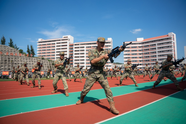 军训团团长李康洪希望参训学生发扬不怕苦、不怕累的精神,端正态度、互学互助,服从命令、听从指挥,刻苦训练,科学训练,安全训练,争当训练勇士,军中木兰。同时要求全体教官严以律己、树好形象,履行职责、遵规守纪;按纲施训、循序渐进,以饱满的热情和昂扬的斗志投入到军训任务,并祝愿军训圆满成功。